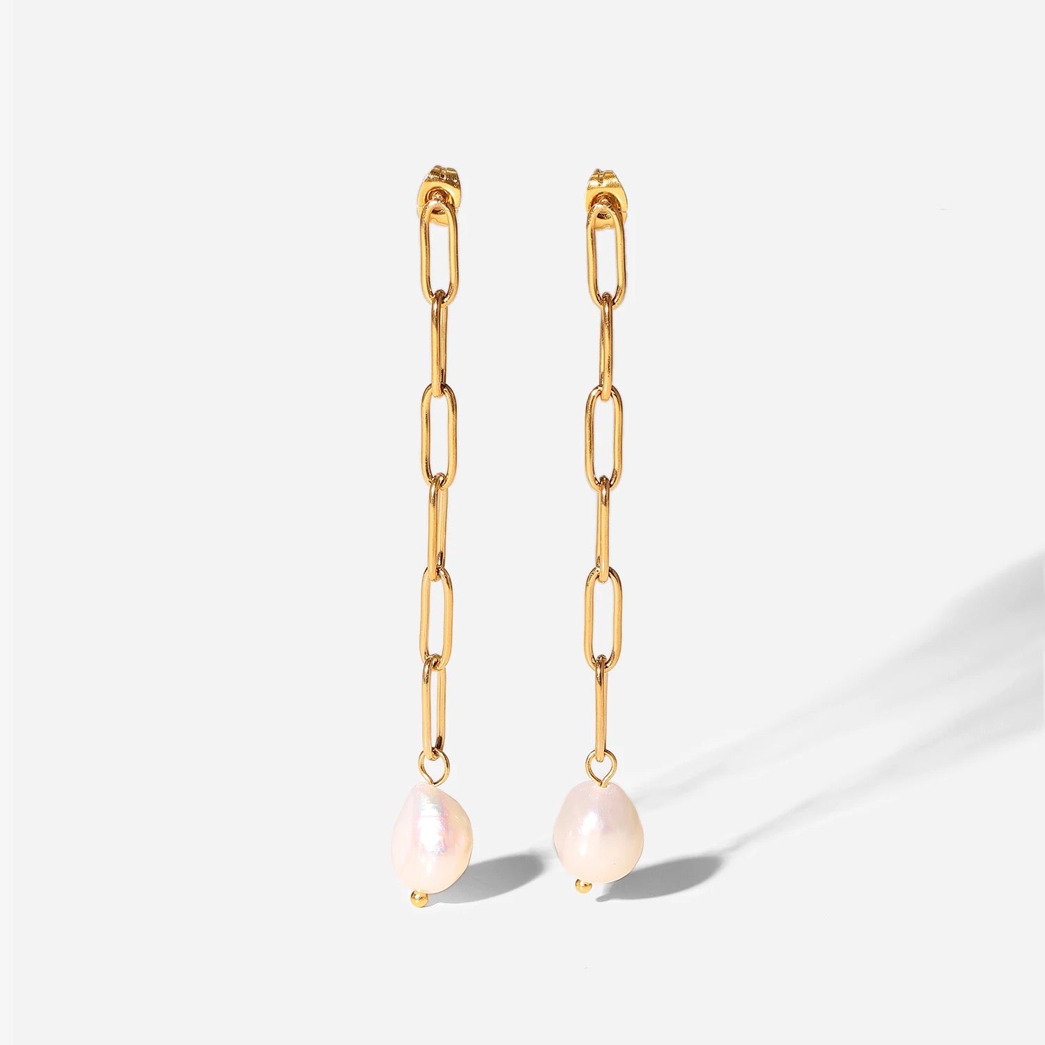 Long chain Pearl stud earrings